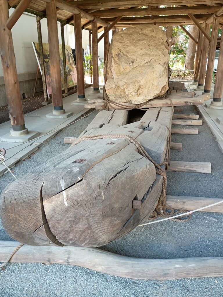 修羅とは古墳を造るときに巨石を運ぶために使った橇(そり)で、菅原道真の祖先、土師氏がその技術を持っていたと考えられています。付近の三塚古墳の周濠から出土しました。