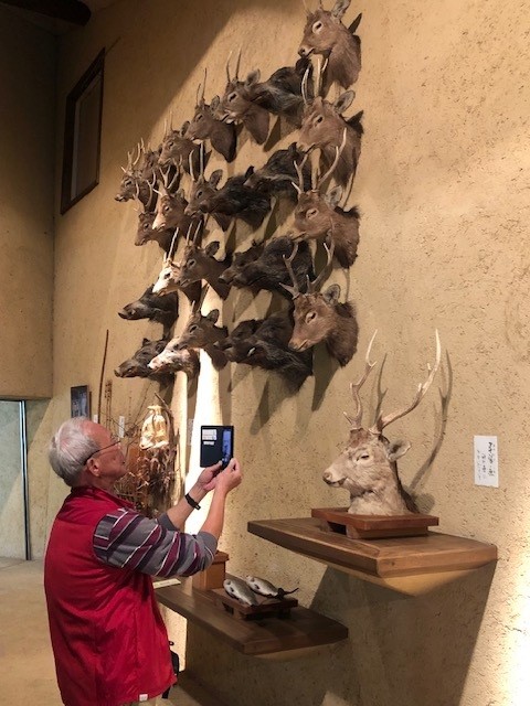 因みにその諏訪の神を奉るために多くの捧げものが供えられるとのことですが、鹿革も重要な貢物であったようで、資料館の壁にはずらりと鹿頭が居並んでいます